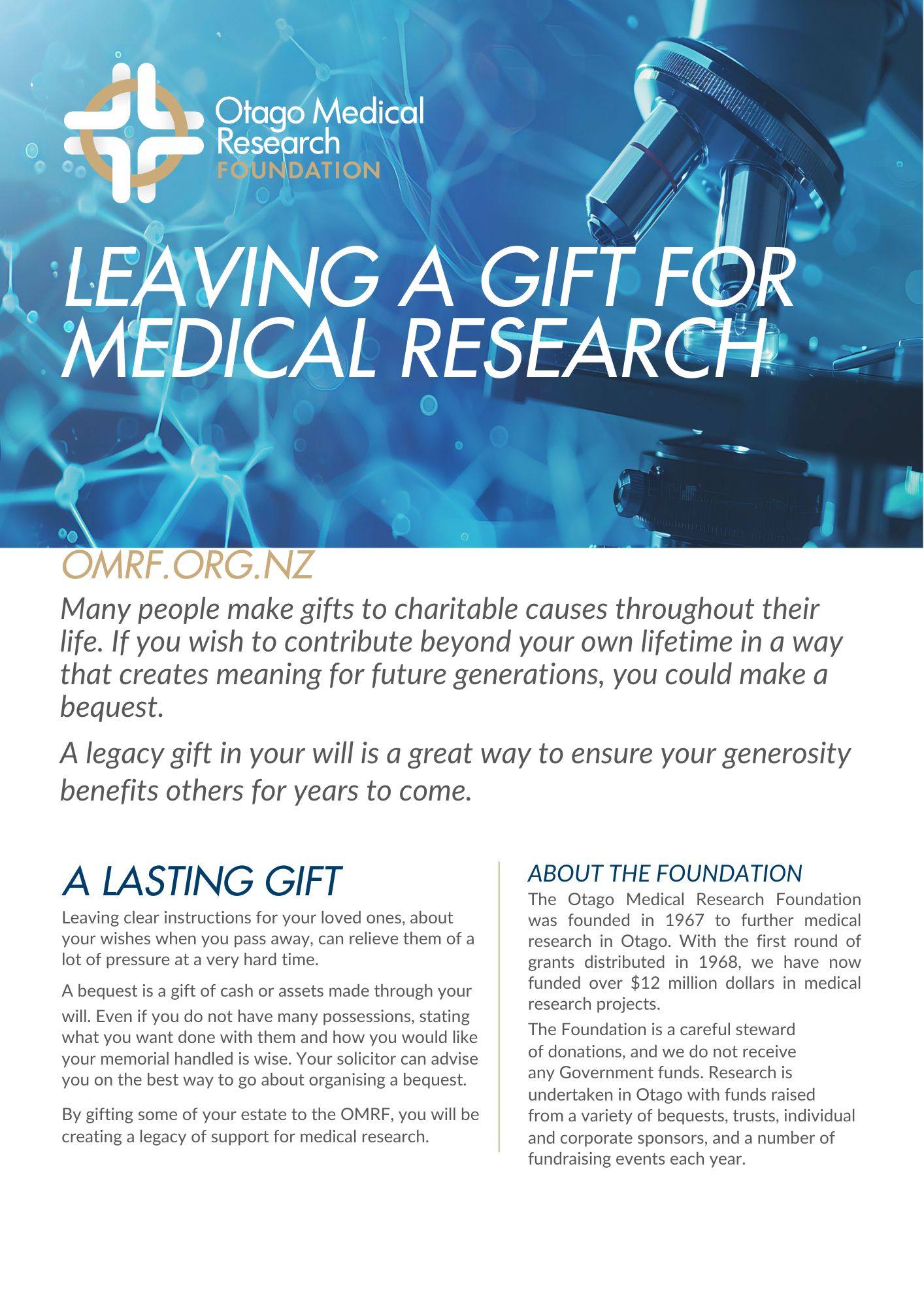Why make a bequest to the Otago Medical Research Foundation?